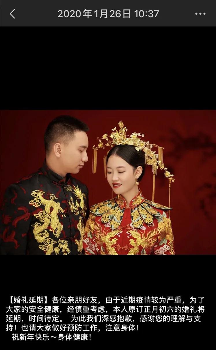 吴书鹏在朋友圈发布婚礼延期的通知