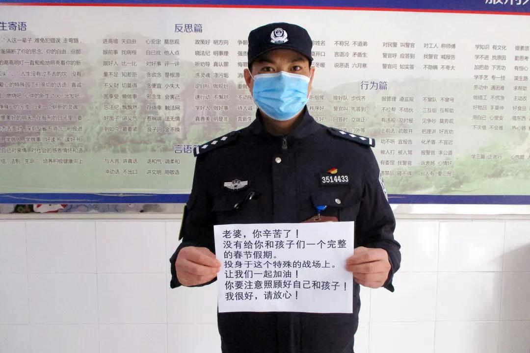 杜宝忠,永安监狱入监中队中队长。这个春节,如没有疫情,他原本准备带妻小回山东泗水老家看望患病在床的奶奶。疫情就是命令,他第一时间退了票投入到封闭式执勤工作中。杜宝忠每天除了抓好对罪犯教育外,还针对新入监人员制定了专门的疫情应急防控处置预案。同时,还与中队民警一道加强对罪犯疫情防护知识宣传和个别教育,做好场所消杀、罪犯体温检测等工作。2月2日下午,母亲打来电话,告诉他,奶奶去世了!杜宝忠是家族的长孙,与奶奶的感情很深,按照家乡的习俗,他必须要进行守灵。此刻,他能做的,就是对着家的方向,向奶奶深深鞠了三个躬。