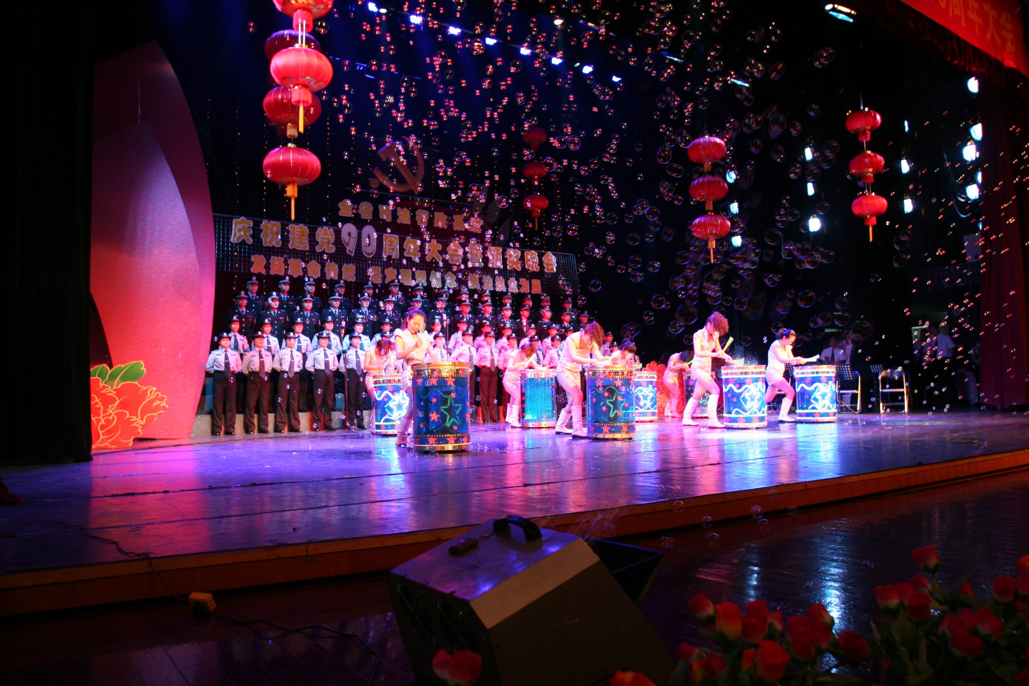 厅劳教局选送的开场节目《盛世飞扬——女子水鼓》