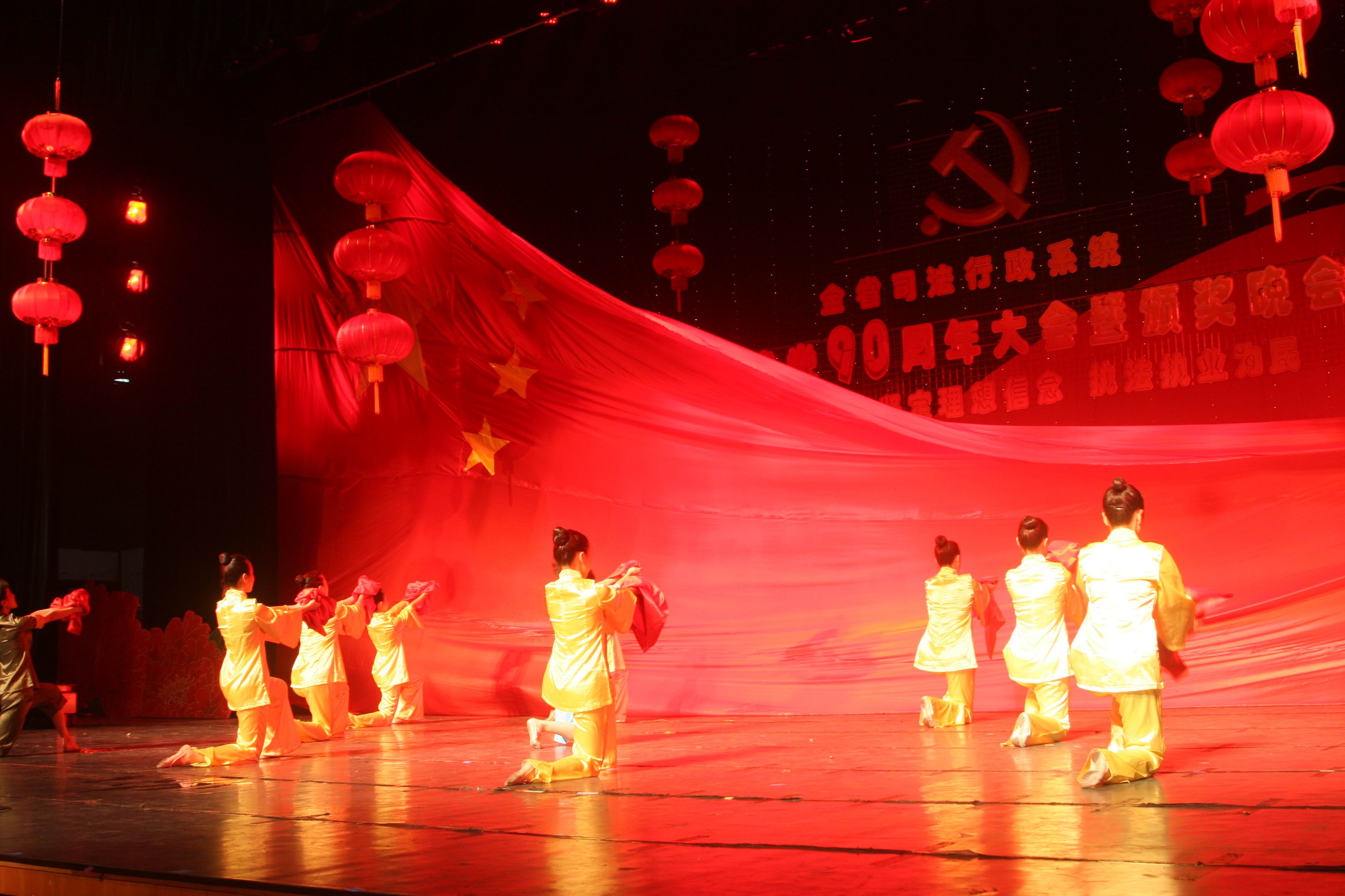 晚会在开场舞蹈《盛世飞扬——女子水鼓》表演中拉开帷幕,大合唱《中国人民解放军占领南京》、《游击队之歌》气势磅礴,再现了战火纷飞的革命岁月,舞蹈《再唱山歌给党听》、《绣红旗》精彩纷呈,体现了党和人民群众的血肉关系,诗朗诵《赤诚与奉献》慷慨激昂,展现了监狱劳教警察无私奉献和辛勤付出,小品《妈妈的生日》、《外遇》感人至深,表现了法律服务工作者大爱情怀的周到服务,共建单位后县社区《老年时装秀》绚丽多彩,杂技《肩上芭蕾》惟妙惟肖,引得现场掌声雷动,喝彩声不断。整场晚会,演员们通过各式各样的艺术形式,讴歌了中国共产党建党90年取得的辉煌成就,展示了全省司法行政事业取得的丰硕成果,也充分体现了全省司法行政干部队伍朝气蓬勃、拼搏进取的精神风貌。