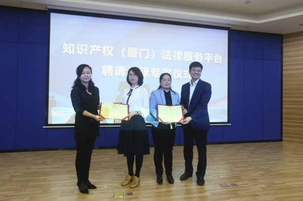 揭牌仪式上,知识产权(厦门)法律服务平台还特别聘请厦门大学法学院教授、博士生导师丁丽瑛和集美大学法学院副院长、集美大学知识产权教育与研究中心主任许翠霞两位国内知名知识产权学者担任法律专家,并现场颁发聘书。