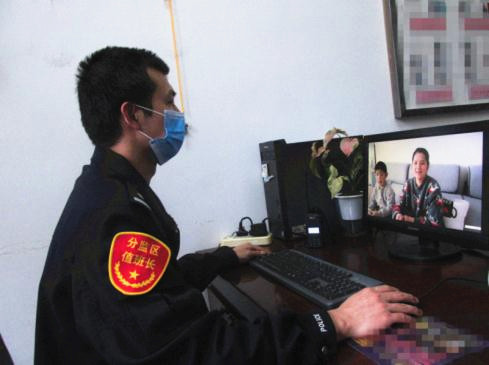 建阳监狱九监区民警陈甬峰在观看家属的问候视频