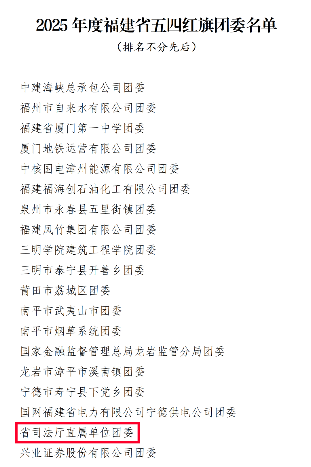 近日,共青团福建省委发布2025年度五四红旗团委表彰名单,厅直团委荣获“2025年度福建省五四红旗团委”称号。