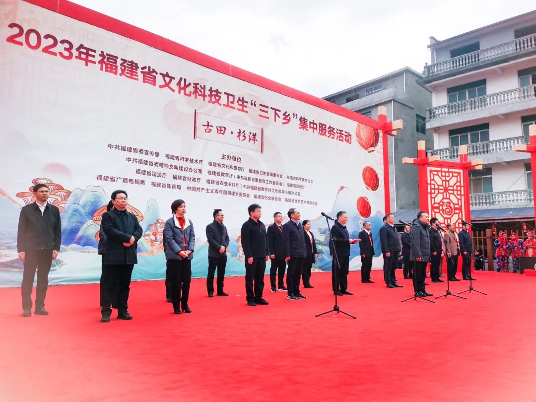2月17日,2023年福建省文化科技卫生“三下乡”集中服务活动在宁德市古田县杉洋镇杉洋村举行。省司法厅副厅长林德明及普法与依法治理处处长林晓霞,宁德市司法局副局长黄孝菁等参加活动。